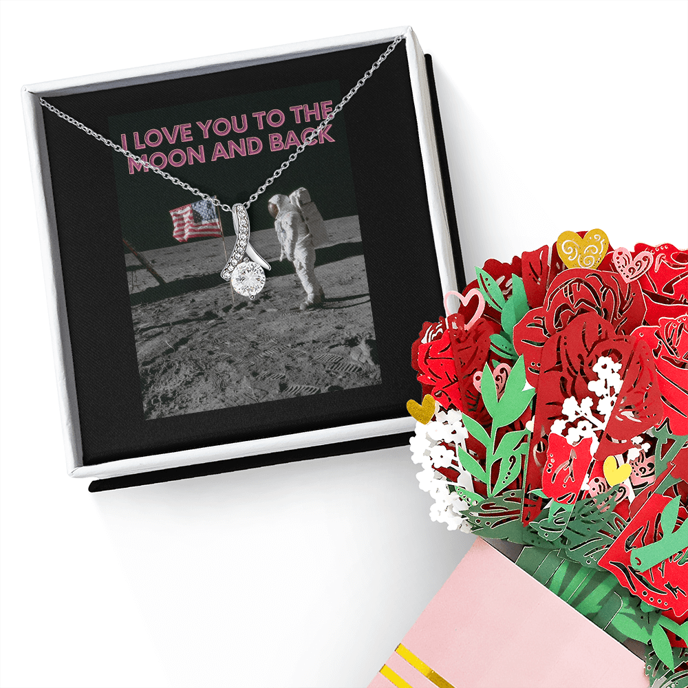 Moonlit Love Gift Set: CZ Ribbon Necklace + Forever Paper Bouquet